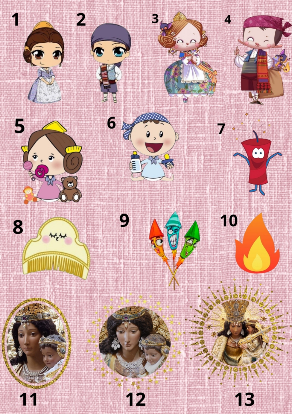 Elige muñeco central, 2 dibujos pequeños y el nombre.