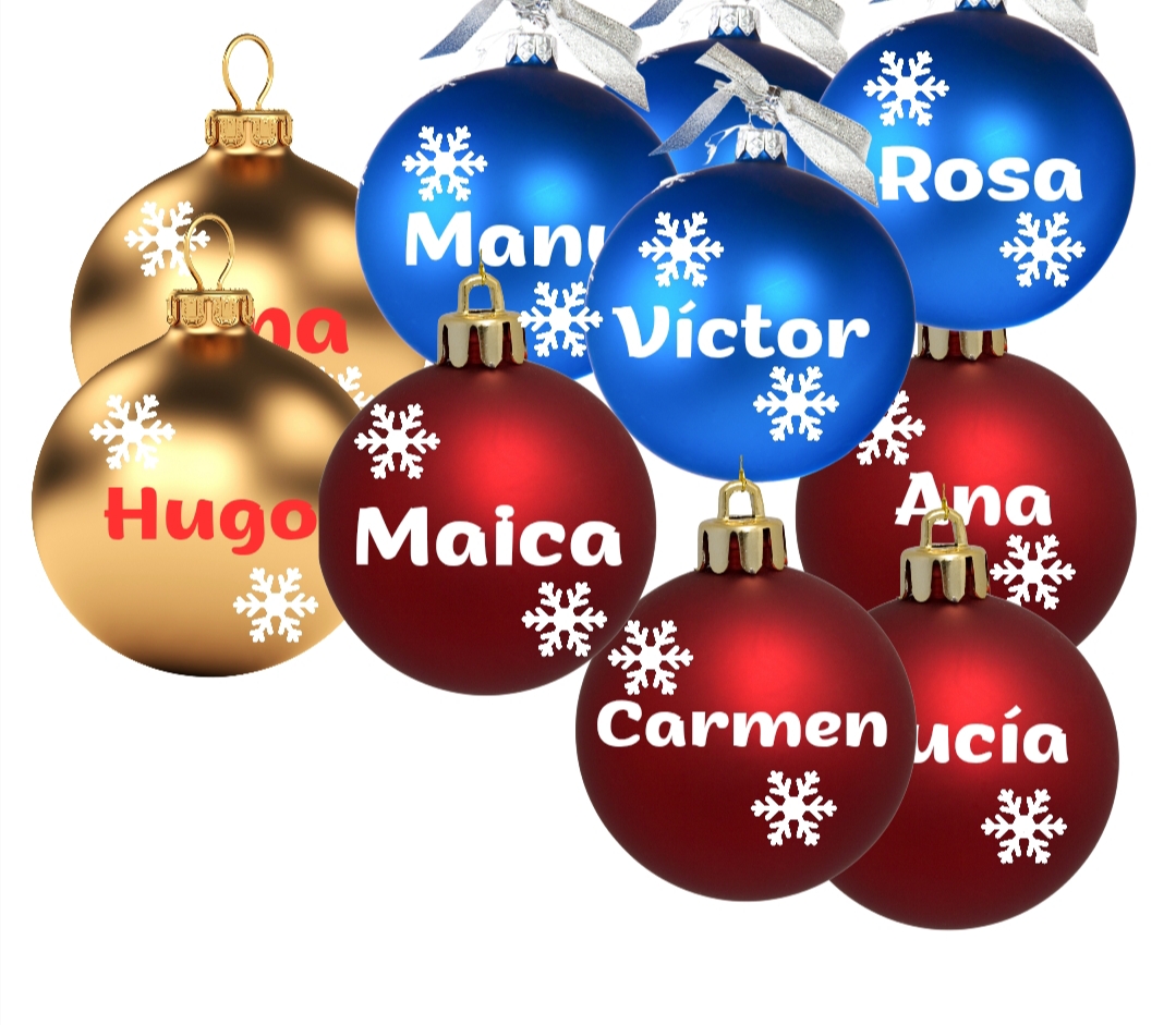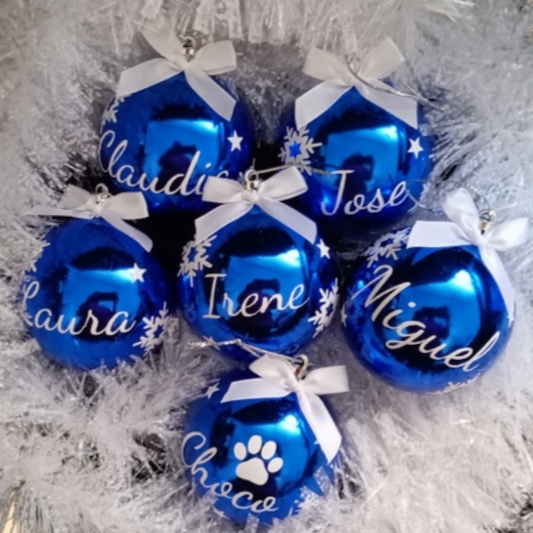 Personalizada con el nombre y 2 copos de nieve y lazo.
