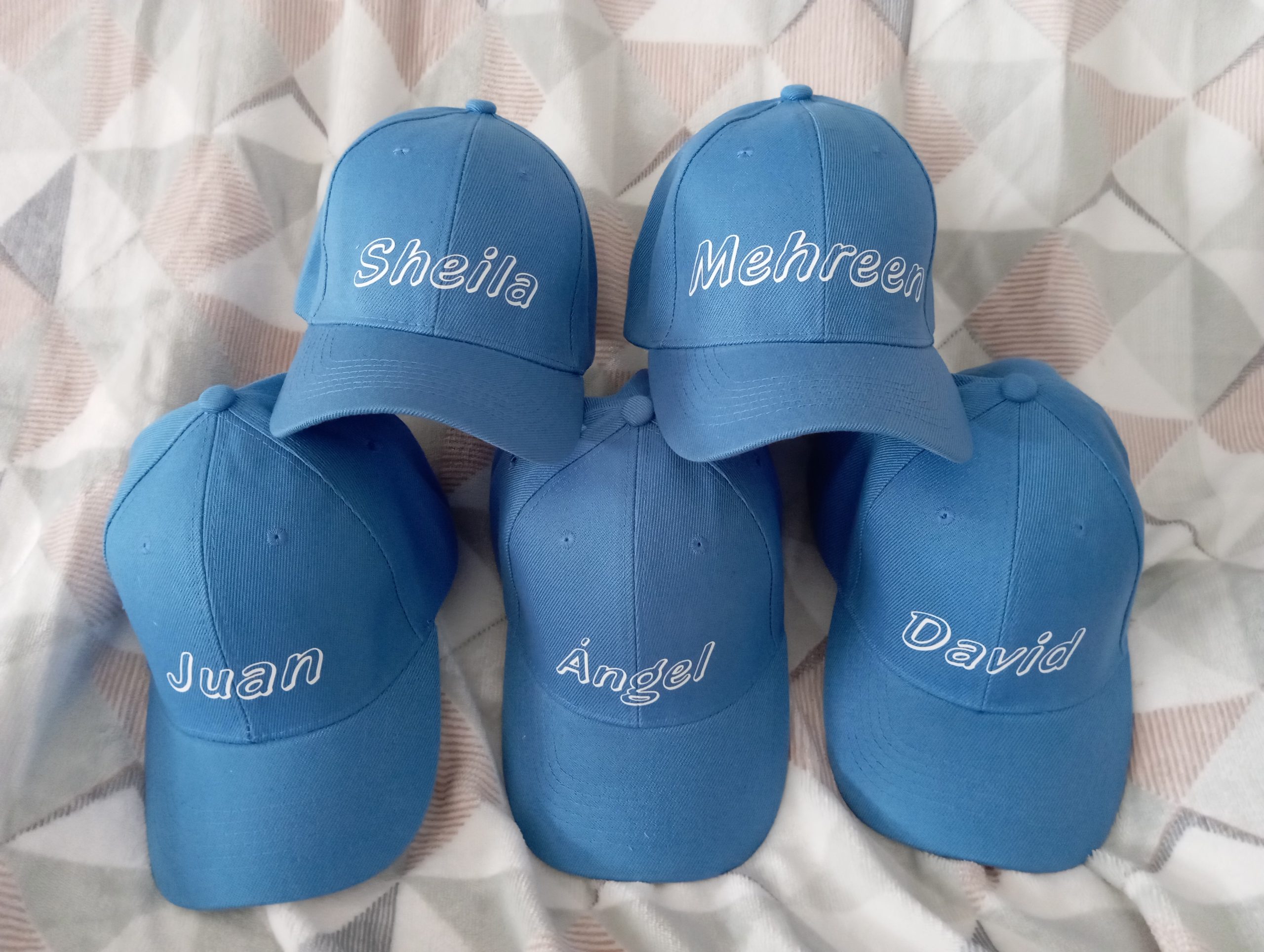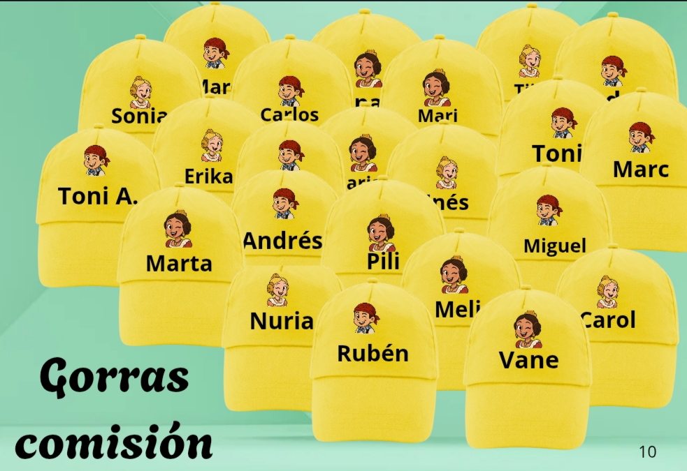 Cada gorra incluye nombre personalizado y dibujo.