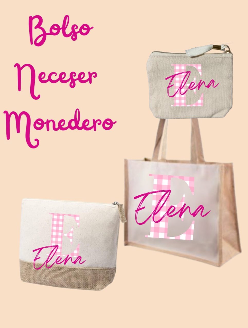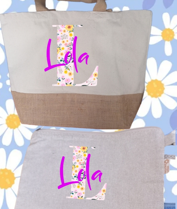 Bolso y neceser de algodón con la base de yute ,monedero de algodón.