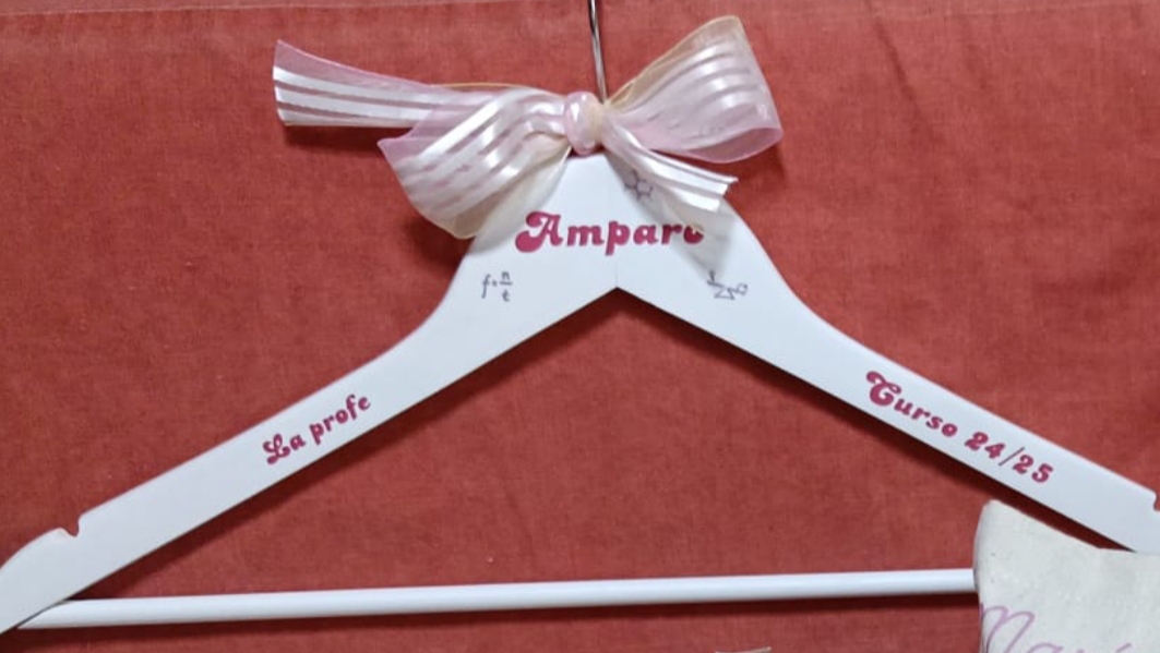 Percha personalizada para regalar a los novios, comuniones , profesores….