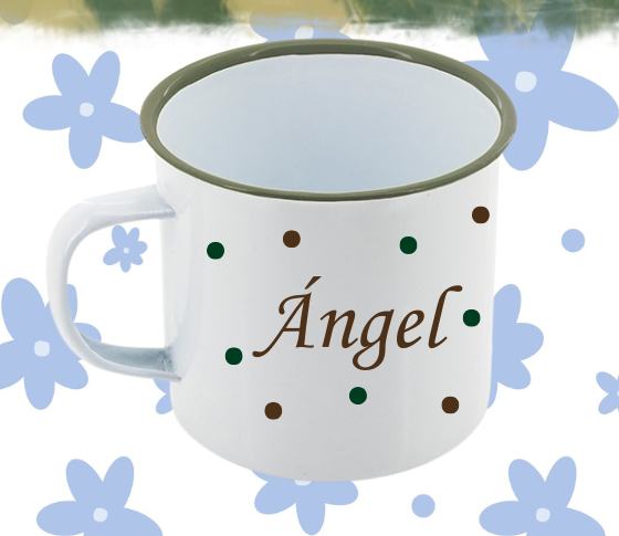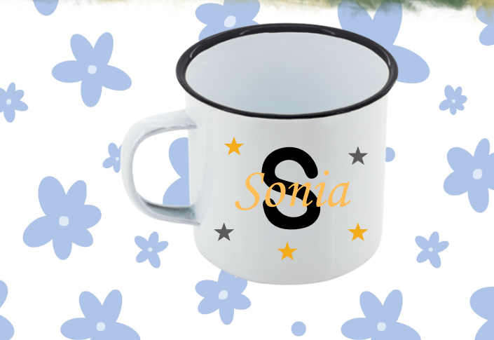 Acabado con un esmaltado resistente que combinan diseños tiernos y coloridos con el nombre que desee.